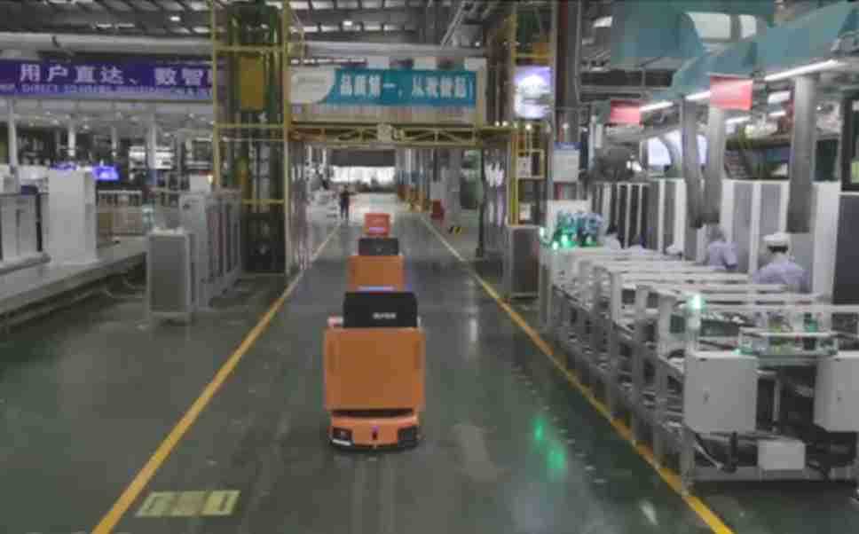 为车载冰箱物流配送打造的智能解决方案,,,包含产中物流通过潜伏举升AMR搬运至线边,,,,产后成品物流智能仓储,,流程包含产中物流智能齐套入库,,,,线边安灯叫料AMR智能配送至线边,,,成品入库、、、出库,,,通过无人堆高车机器人,,,,智能仓储管理替代人工作业管理,,实现更高存储、、、、更高效率、、、更具柔性化的解决方案。。。